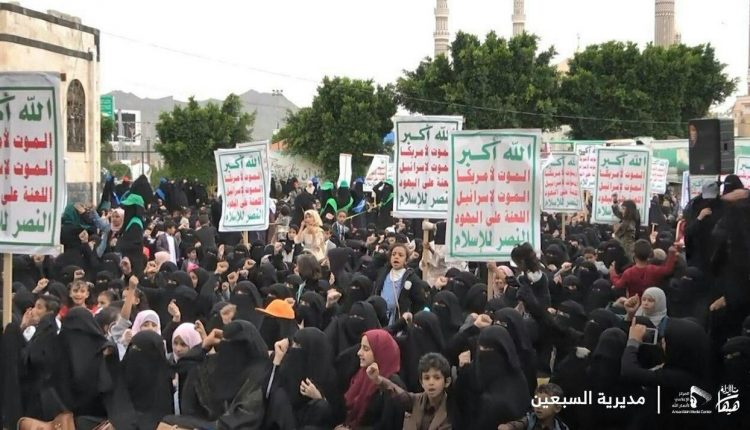 وأكدت نساء أمانة العاصمة التمسك بالقضية الفلسطينية والمقدسات الإسلامية وتحرير فلسطين ورفض الهيمنة الأمريكية في المنطقة .. منددات بالتطبيع الإماراتي الصهيوني.
