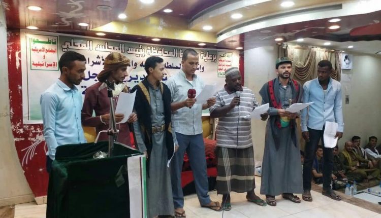 وأكد المشاركون الاستمرار في ذات النهج الثوري حتى تحقيق كامل أهداف ثورة ٢١ من سبتمبر، وعدم التفريط بدماء الشهداء الابرار وتضحياتهم الخالدة ومواجهة تصعيد العدو بمزيد من التصعيد والتلاحم الشعبي وتوحيد الجبهة الداخلية والاستمرار في رفد الجبهات .