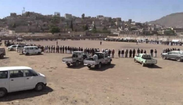 نظم موظفو المكاتب الخدمية بمحافظة تعز، وقفة احتجاجية للتنديد باستمرار احتجاز سفن المشتقات النفطية من قبل دول تحالف العدوان.