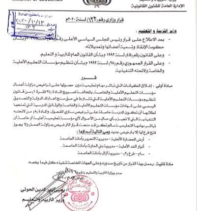 وزارة التربية تغلق 3 مدارس أهلية في العاصمة صنعاء