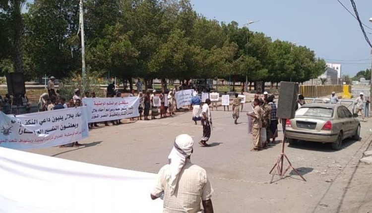 وقفة احتجاجية لأحفاد بلال بالحديدة للتنديد باحتجاز العدوان للسفن النفطية