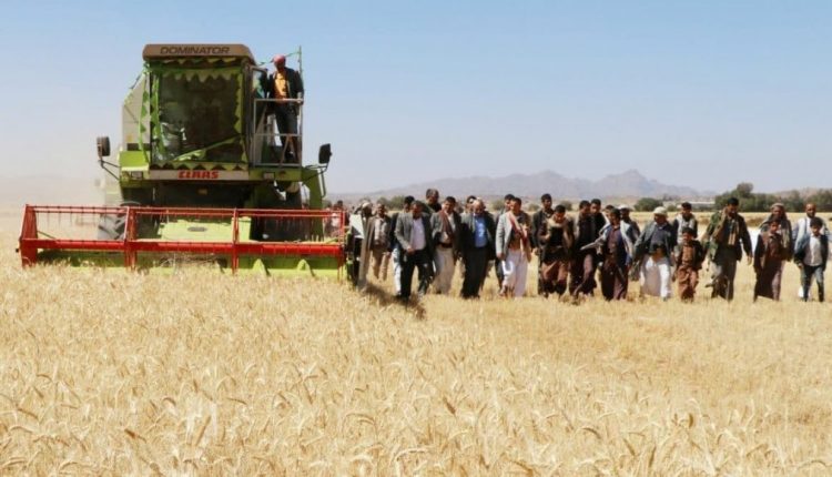 تدشين حصاد القمح بمزرعة قاع شرعة في ذمار