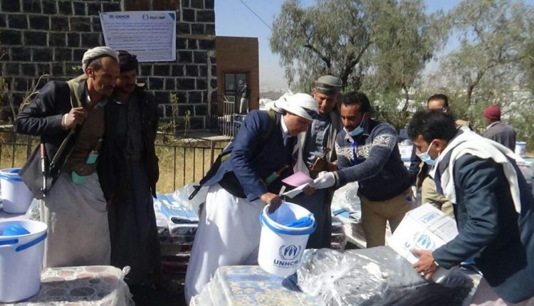 دشن فرع المجلس الأعلى للشؤون الإنسانية بمحافظة صنعاء اليوم الأحد عملية توزيع مساعدات إيوائية للفئات النازحة والمتضررة ضمن مشروع تحسين الظروف المعيشية للسكان المتضررين، بمديرية بني حشيش.