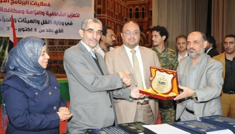 وبيّن أن البرنامج التوعوي لمكافحة الفساد استهدف 235 موظفا بديوان وزارة النقل والهيئات والمؤسسات التابعة لها، وركز على العاملين في الجوانب المالية والادارية والمناقصات والمخازن.. مشيراً إلى أن الوزارة تسعى لترسيخ أسس الشراكة في جهود تعزيز الشفافية والنزاهة ومكافحة الفساد تنفيذاً لتوجيهات القيادة الثورية والمجلس السياسي الأعلى.