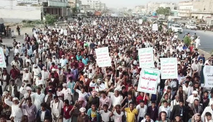 عبس تشهد مسيرة حاشدة لأبناء تهامة رفضا واستنكارا للإرهاب الأمريكي