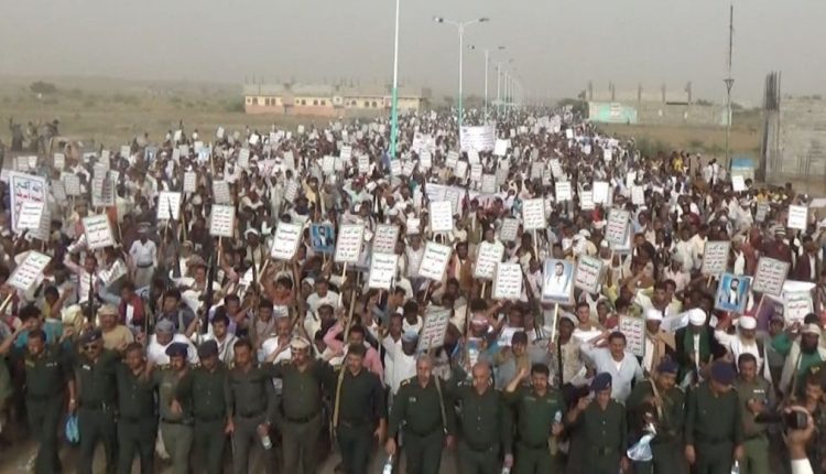 مسيرة في المربعين الجنوبي والشرقي بالحديدة للتنديد بجرائم بالعدوان والحصار الأمريكي