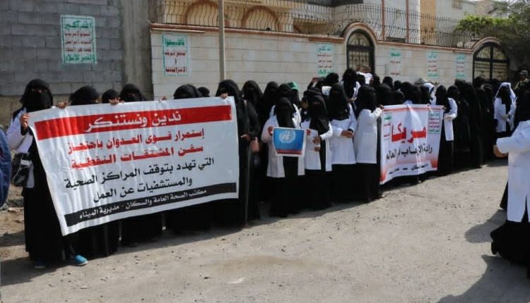 وقفة للقطاع الصحي بالحديدة للتنديد بقرصنة العدوان على السفن النفطية