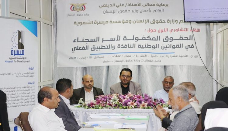 نظمت وزارة حقوق الإنسان ومؤسسة ميسرة التنموية اليوم بصنعاء اللقاء التشاوري للحقوق المكفولة لأسر السجناء في التشريع الوطني والتطبيق الفعلي.