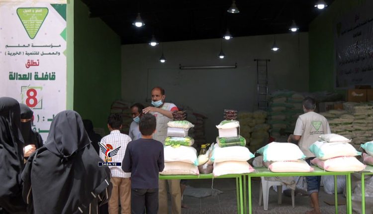 دّشنت مؤسسة العلم والعمل للتنمية اليوم توزيع سلال غذائية بأمانة العاصمة ومحافظة الحديدة ضمن قافلة العدالة الثامنة التي تنفذها المؤسسة.