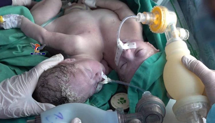 نجح فريق طبي بمستشفى السبعين للأمومة والطفولة بأمانة العاصمة اليوم، في إجراء عملية ولادة قيصرية لامرأة أنجبت توأما سياميا ملتصقا من الصدر والبطن.
