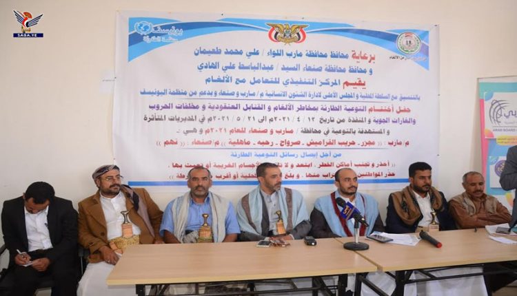وأشار إلى أن العدوان استهدف محافظة مأرب بمختلف الأسلحة ومنها المحرمة دوليا ما يجعلها بحاجة إلى اهتمام وتوعية ومسح ونزع مخلفات الغارات والقنابل العنقودية.