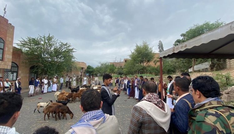سير أبناء مديرية العدين بمحافظة إب اليوم ، اليوم قافلة عيدية للجبهات احتوت على رؤوس الإبقاء والاغنام .