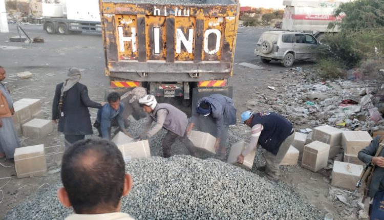 ضبط مركز جمارك عفار بمحافظة البيضاء أمس الثلاثاء 28 ديسمبر كمية من الأدوية المهربة .