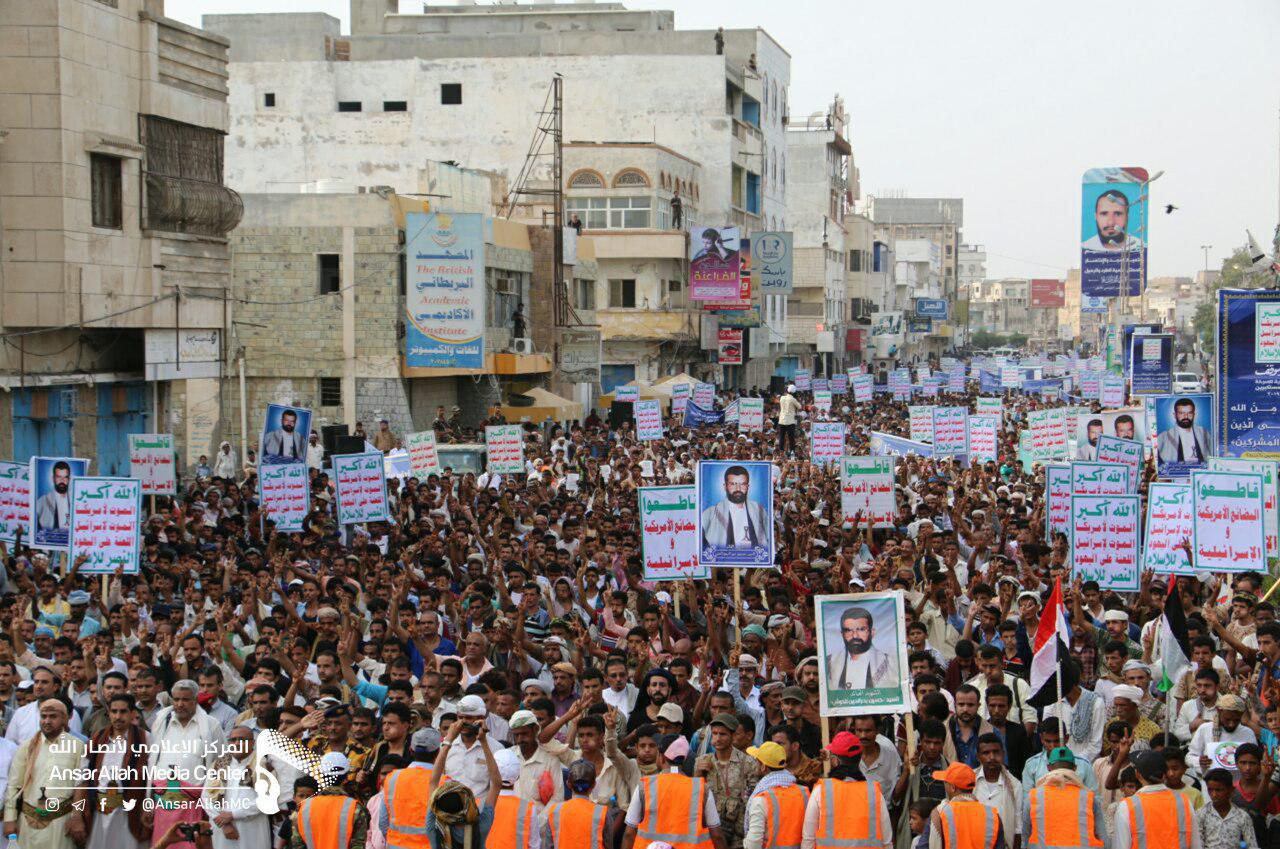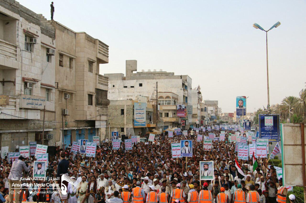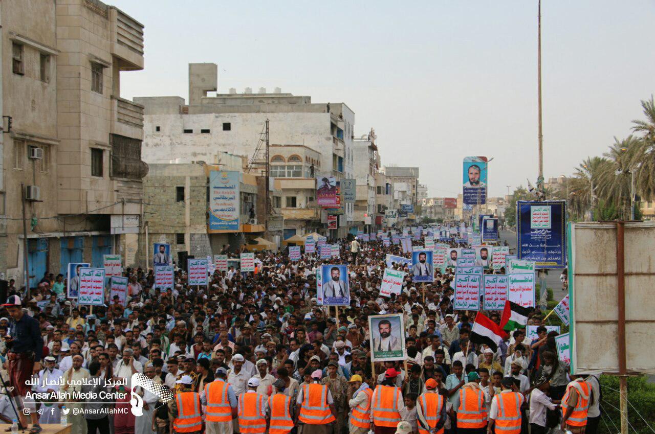 شهدت مدينة الحديدة، يوم الجمعة، مسيرة جماهيرية حاشدة بمناسبة الذكرى السنوية للصرخة في وجه المستكبرين التي أطلقها الشهيد القائد السيد” حسين بدر الدين الحوثي رضوان الله عليه.