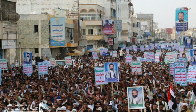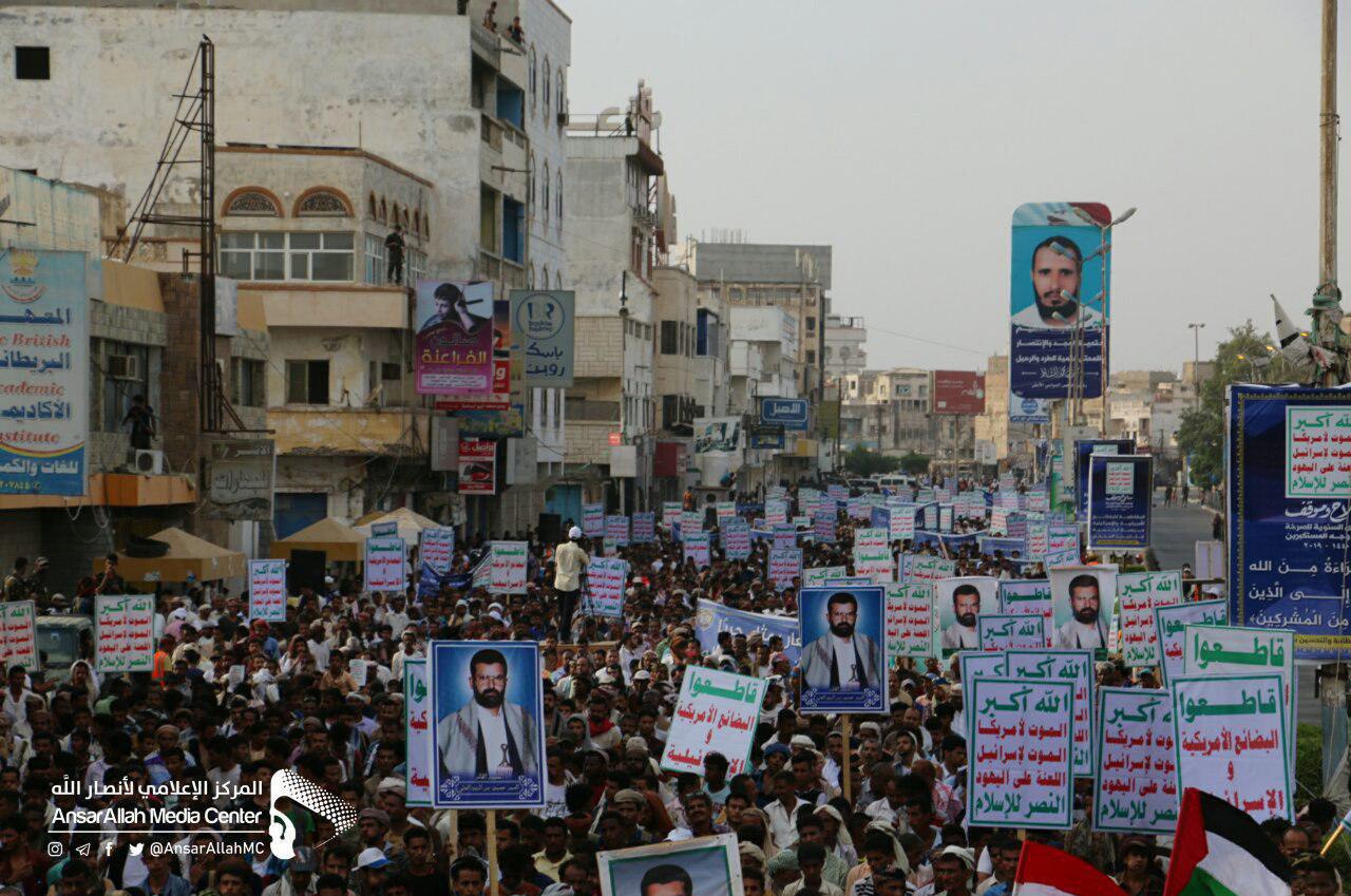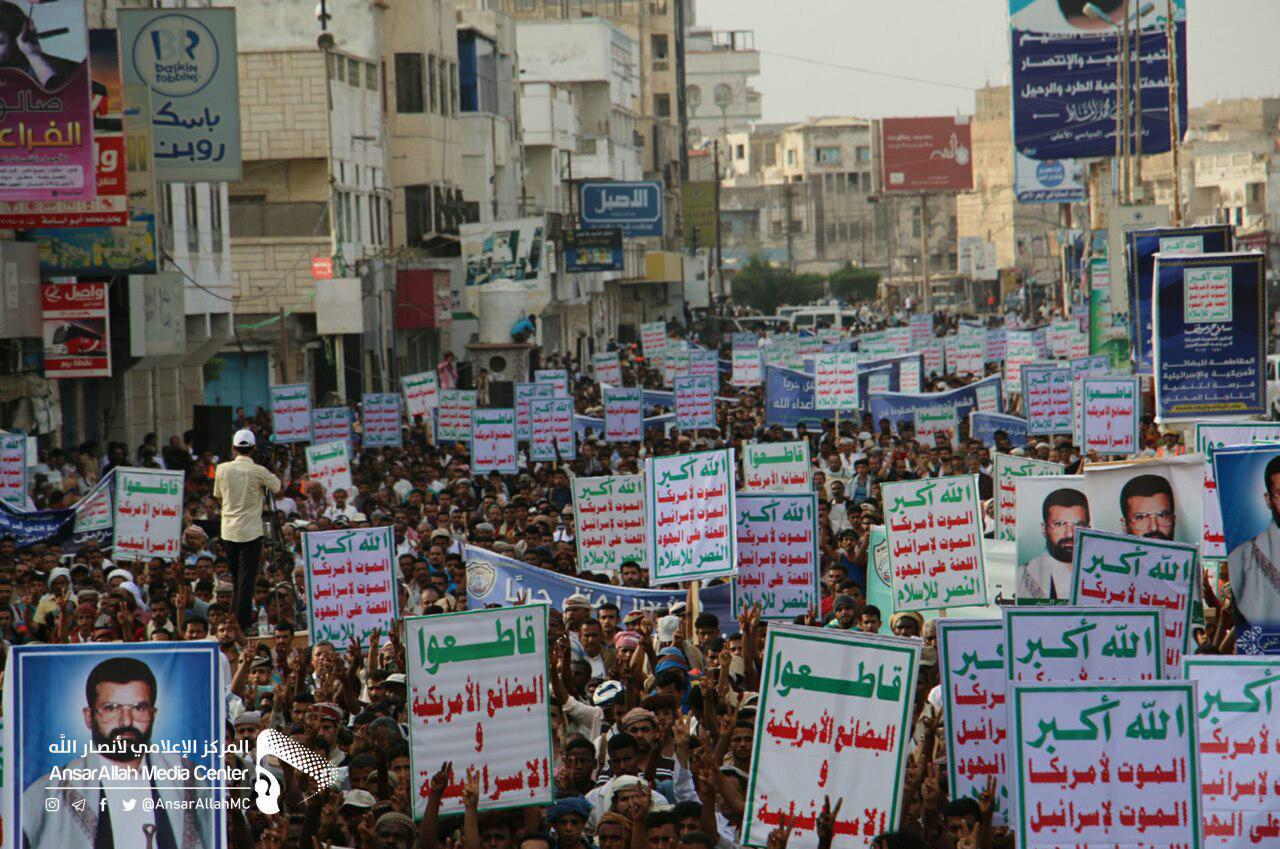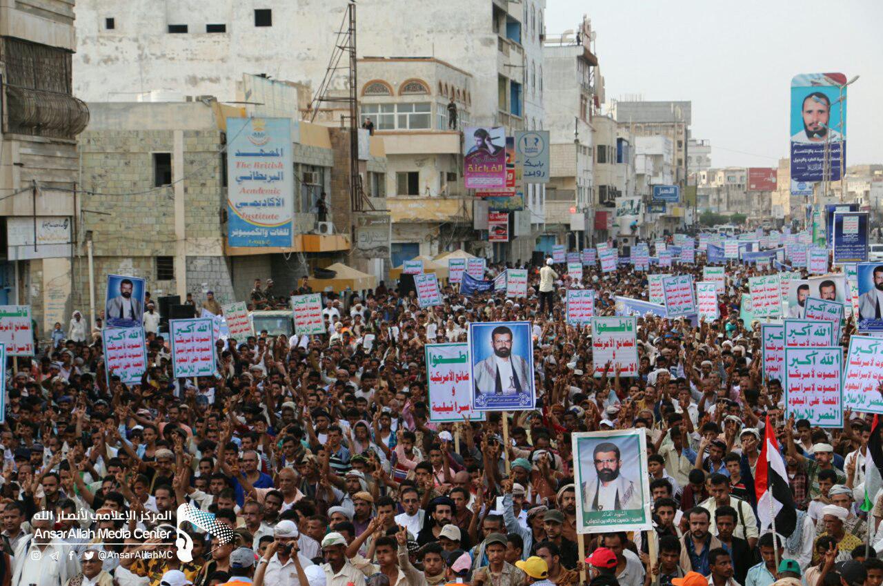 شهدت مدينة الحديدة، يوم الجمعة، مسيرة جماهيرية حاشدة بمناسبة الذكرى السنوية للصرخة في وجه المستكبرين التي أطلقها الشهيد القائد السيد” حسين بدر الدين الحوثي رضوان الله عليه.