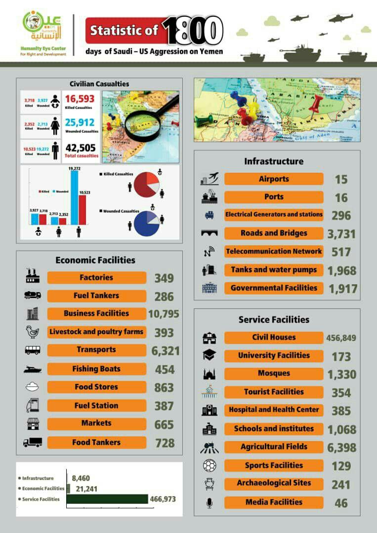 إنفوجرافيك.. إحصائية 1800 يوم من العدوان الأمريكي السعودي الإماراتي الغاشم على اليمن آخر تحديث فبراير 29, 2020
