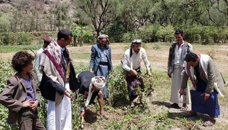 أوضح مدير عام مكتب الزراعة والري بالمحافظة المهندس هلال الجشاري، أنه اطلاق مبادرة مجتمعية لقلع اشجار القات وزراعة أشجار بديلة عنه، والتوسع في زراعة البقوليات مستقبلا وخلال النزول تم اللقاء بالمزارعين وتوعيتهم، وإرشادهم، واختيار قياديين ريفيين لتشكيل جمعية زراعية للمنتجين الزراعيين وإعادة تفعيل الجمعية السابقة بالمنطقة.