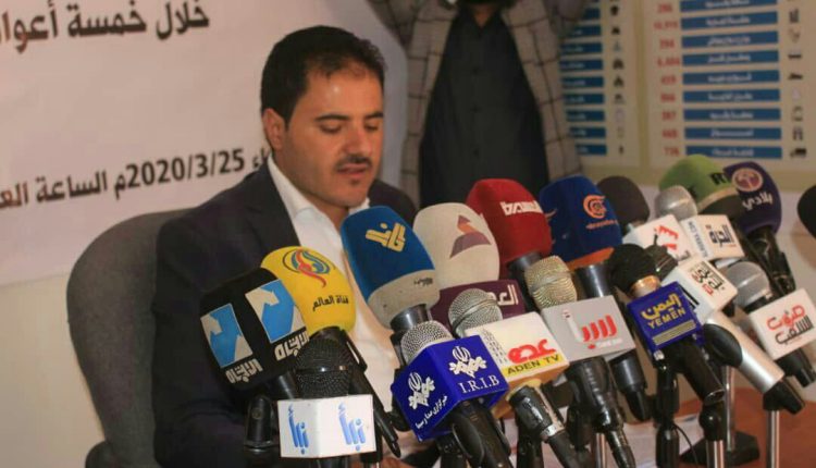 وفي المؤتمر أشار رئيس المركز أحمد أبو حمراء، إلى أنه على مدى الأعوام الخمسة الماضية منذ 26مارس 2015م حتى 26 مارس 2020م، لم تتوقف آلة القتل الغاشمة لتحالف العدوان السعودي الإمارتي في سفك دماء الأبرياء من المدنيين في اليمن، بدعم ومساندة ومشاركة الولايات المتحدة الأمريكية وبريطانيا وفرنسا”، مستنكراً الصمت الدولي من قبل الأمم المتحدة ومجلس الأمن الدولي الذي وصفه بالمعيب والمخزي.