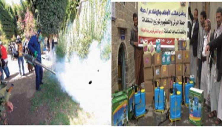 وأوضح مدير عام مكتب الأوقاف بالمحافظة محمد عيشان أن حملة الرش والتعقيم يرافقها توزيع مواد نظافة ومطهرات للمساجد بهدف تعزيز اشتراطات وقاية المصلين من أي تداعيات محتملة في حال ظهور الوباء.