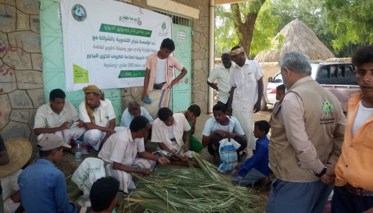 الهدهد|اختتمت مؤسسة بنيان التنموية بمحافظة الحديدة ،اليوم ، ثلاث دورات تدريبية في مجال صناعة الظروف في الشريط الساحلي .حيث تم تنفيذ دورة تدريبية لعدد 16 مشاركا من أبناء منطقة البجيلة ودورتين لعدد 31 مشاركة من نساء منطقة دير النهاري.وفي الاختتام أكد ضابط المشروع المهندس محمد أبو طالب على اهمية هذه الدورة التي تأتي في إطار مشروع زيادة انتاجية الحبوب في الشريط الساحلي، مشيراً إلى أن الدورات التي استمرت لمدة عشرة أيام هدفت إلى احياء الصناعات المحلية المرتبطة بالجانب الزراعي.وبيّن أنه تم اكساب المشاركين خبرات ومعارف حول صناعة الظروف لتخزين التقاوي (الحبوب) في الشريط الساحلي والتي تتناسب مع مناخ وظروف المنطقة التهامية من حيث الحرارة و الرطوبة .من جانبهم أشار المتدربون إلى أهمية الدورات ومدى استفادتهم منها واكتسابهم خبرات كافية وبما يؤدي إلى توفيرها في الأسواق ليستفيد منها المزارعون، داعين الجهات ذات العلاقة للتعاون معهم و دعمهم بتوفير المواد الخام حتى يتمكونوا من الاعتماد على أنفسهم .وناشدوا الدولة بتشجيع زراعة أشجار نخيل الدوم والأنواع الأخرى من النخيل التي تعتبر مواد خام لكثير من الصناعات الحرفية، كالظروف والحصير و الموائد والسجاجيد وكذا الظلال (الكوافي) بجميع انواعها،لافتين إلى أنها ستساهم في تحسين مستواهم المعيشي من خلال أسعارها الجيدة التي قد يصل سعر الظلة الواحدة منها لأكثر من خمسة عشر الف ريال.