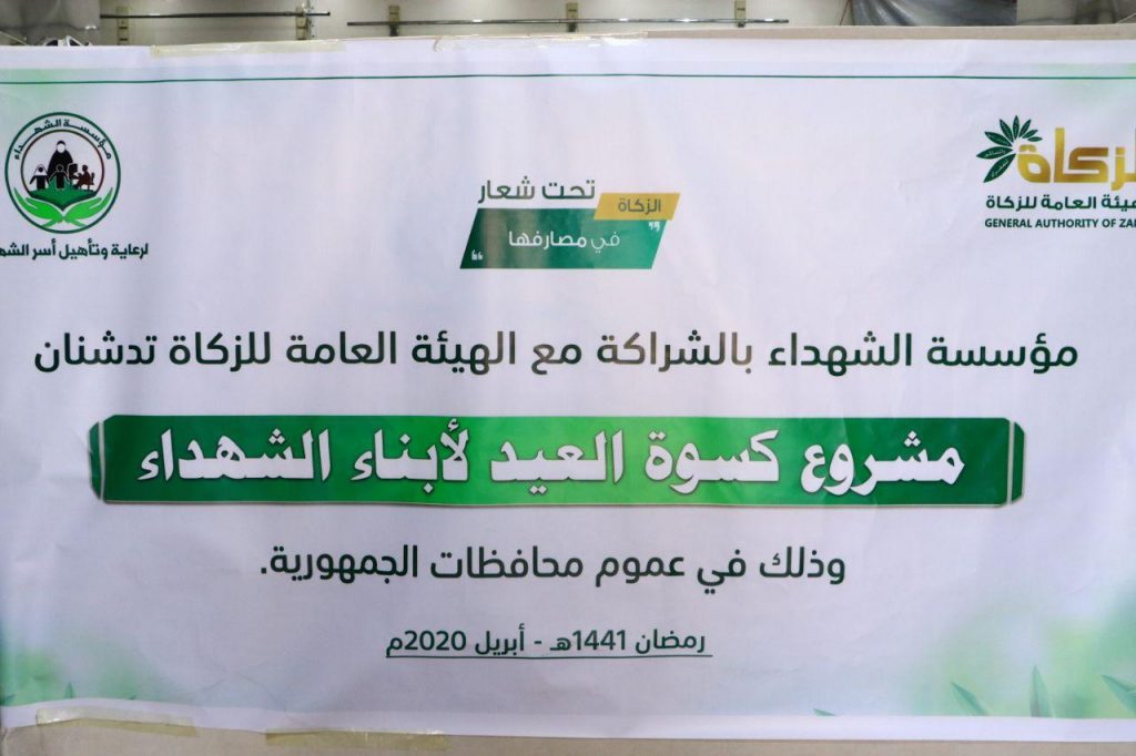 بالصور: هيئة الزكاة ومؤسسة الشهداء تدشنان مشروع كسوة العيد لأبناء الشهداء
