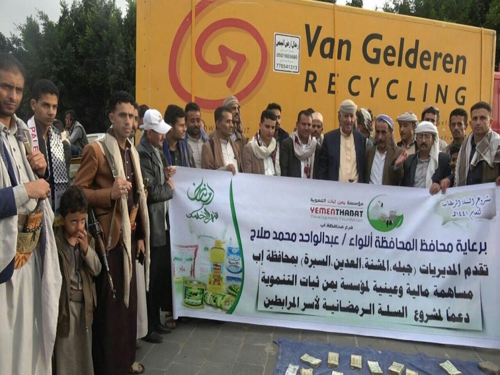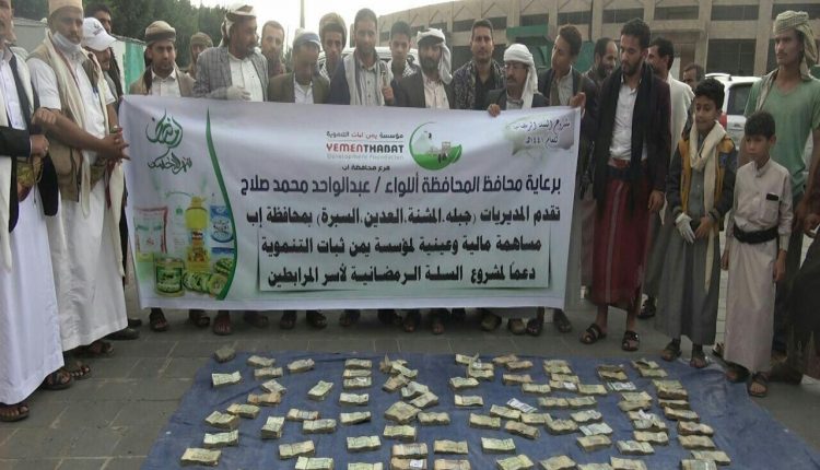 وخلال تسلم مؤسسة يمن ثبات التنموية بإب للقوافل أوضح محافظ المحافظة عبدالواحد محمد صلاح أن هذه القوافل المخصصة لدعم أسر المرابطين والإهتمام بهم ورعايتهم وهذا أقل واجب تجاه من يدافعون عن حياض هذا الوطن وكرامته في مختلف الجبهات . داعيا كافة رجال المال والأعمال والميسورين والقطاع الخاص ومنظمات المجتمع المدني إلى الإسهام مع القطاع العام في دعم أسر المرابطين والشهداء والجرحى والأسرى والإهتمام بهم وهذا واجب ديني ووطني كبير .