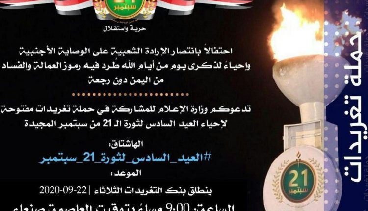 مساء اليوم انطلاق حملة تغريدات احتفاءً بالعيد السادس لثورة 21 سبتمبر