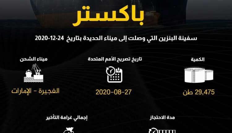 وأكد المتحدث الرسمي بإسم شركة النفط اليمنية عصام المتوكل وصول السفينة “باكستر” إلى ميناء الحديدة والتي تحمل كمية (29,475) طن من مادة البنزين , بعد احتجازها بشكل تعسفي من قبل تحالف العدوان لمدة 104 أيام .