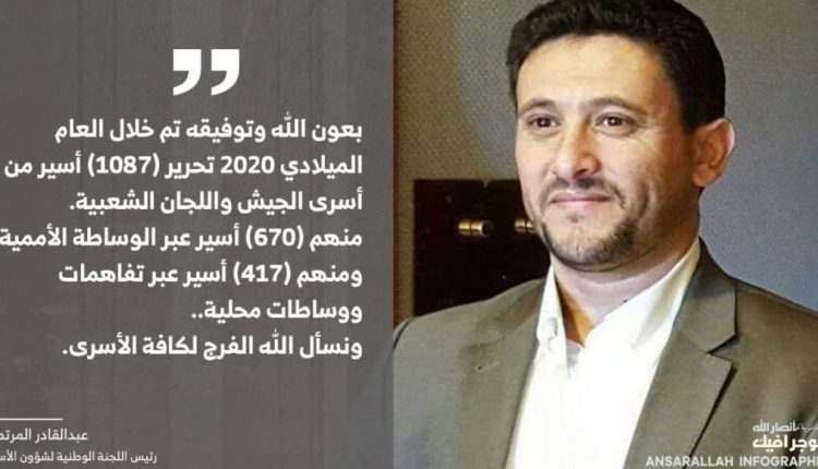 وقال المرتضى في تغربدة له على تويتر: ت في 2020 تحرير 1087 أسير من أسرى الجيش واللجان الشعبية، موضحا أنه تم تحرير 670 أسيرا عبر الوساطة الأممية و417 أسيرا عبر تفاهمات ووساطات محلية .