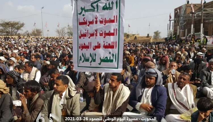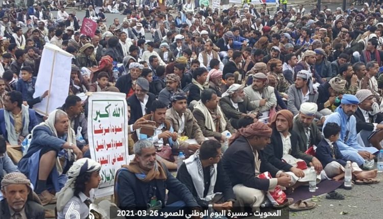 وطالب بيان صادر عن المسيرة كافة القوى السياسية والوطنية وجماهير الشعب اليمني بمزيد من الاصطفاف والتلاحم لتعزيز الصمود والثبات في العام السابع ومواجهة صلف وغطرسة العدوان وحصاره.. مؤكدا إصرار أبناء المحويت على المضي في مواجهة العدوان واستمرار رفد الجبهات بالرجال والمال والعتاد .. معبراً عن الاعتزاز بالانتصارات التي يحققها أبطال الجيش واللجان الشعبية في الجبهات لردع العدوان والكف عن غطرسته.