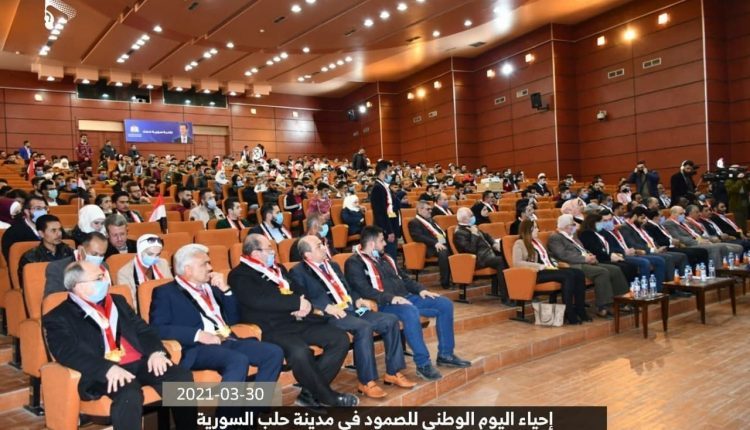 أقيمت اليوم الثلاثاء ، بمدينة حلب السورية فعاليات خطابية بمناسبة الذكرى السادسة للصمود في وجه العدوان الأمريكي الصهيوني السعودي الاماراتي الغاشم وتدشين العام السابع لمواجهة مخططات الاحتلال والتصدي لمساعي فرض الوصاية على اليمن.