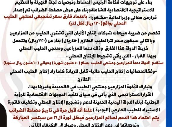 صورة بشرى سارة للمزارعين ومنتجي الحليب المحلي الطازج في الحديدة وغيرها في مايو 26, 2023 *بشرى سارة للمزارعين ومنتجي الحليب المحلي الطازج في الحديدة وغيرها* ?? #المركز_الإعلامي_لمصلحة_الضرائب شارك FacebookTwitterGoogle+WhatsAppTelegram