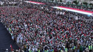ميدان السبعين يشهد مشاركة واسعة لعرسان هيئة الزكاة ضمن العرس الجماعي الرابع في مسيرة “مع غزة.. جبهات الإسناد ثبات وجهاد”