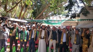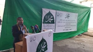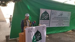 وتطرق إلى بركات ذكرى المولد التي يبرز فيها دور اليمنيون المشرف في نصرة القضية الفلسطينية في وقت تتخاذل أغلب الشعوب العربية والإسلامية عن دعم مقاومتها الباسلة .
