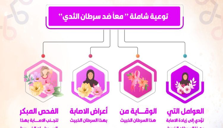تهدف الحملة التي تستمر حتى 31 أكتوبر الحالي، إلى رفع مستوى الوعي المجتمعي حول سرطان الثدي وأعراضه وعوامل الإصابة به وطرق الوقاية منه وطرق الفحص الذاتي للكشف المبكر، بما يسهم في خفض معدلات الإصابة والوفيات الناتجة عنه.
