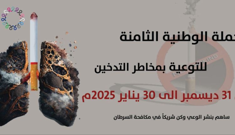 تهدف الحملة التي تستمر من ٣١ ديسمبر وحتى 30 يناير من العام 2025م، إلى رفع مستوى الوعي المجتمعي بمخاطر التدخين على صحة المدخن وعلى المحيطين به، والذي يؤدي إلى الإصابة بالعديد من السرطانات أبرزها سرطان الفم والرئة، بالإضافة إلى العديد من الأمراض الخطيرة كالقلب وتصلب الشرايين وتليف الكبد.