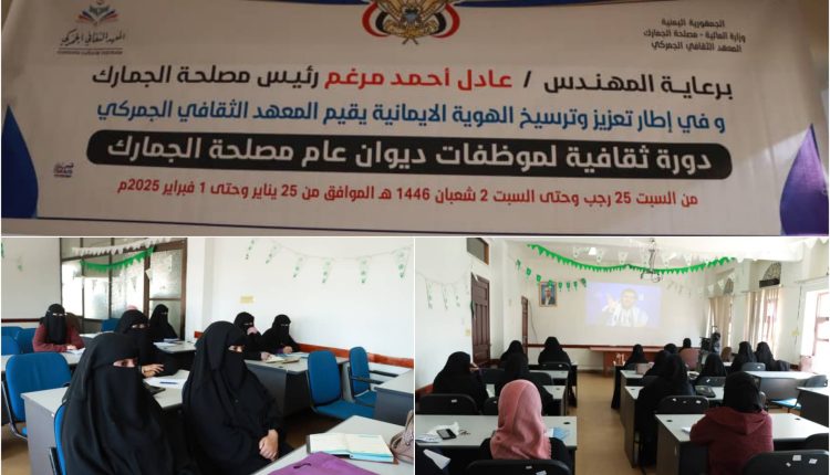 افتتح المعهد الثقافي الجمركي، دورة ثقافية للكادر النسائي بالمصلحة , من السبت 25 رجب وحتى السبت 2 شعبان 1446 هـ ، برعاية رئيس مصلحة الجمارك المهندس عادل أحمد مرغم.