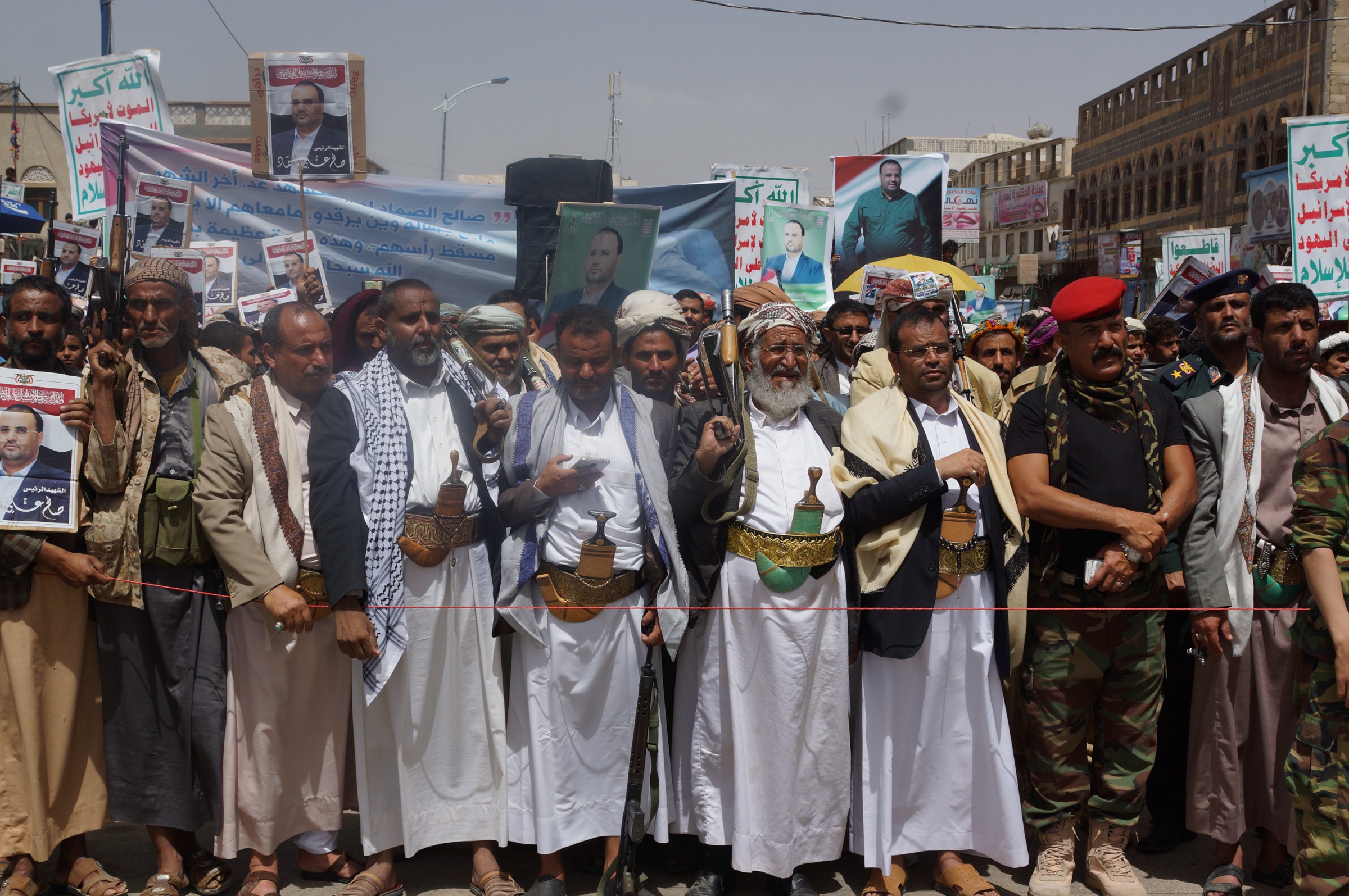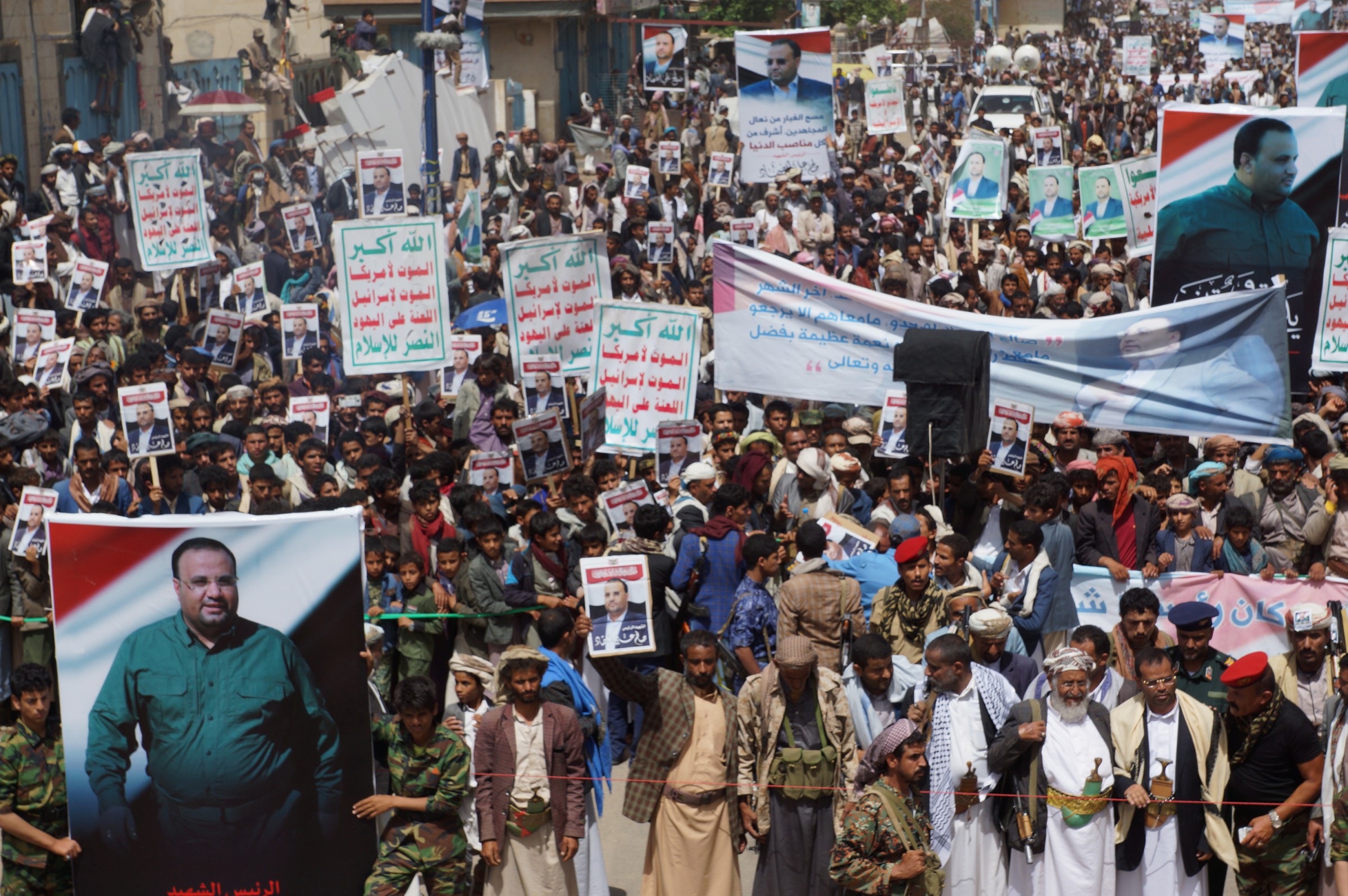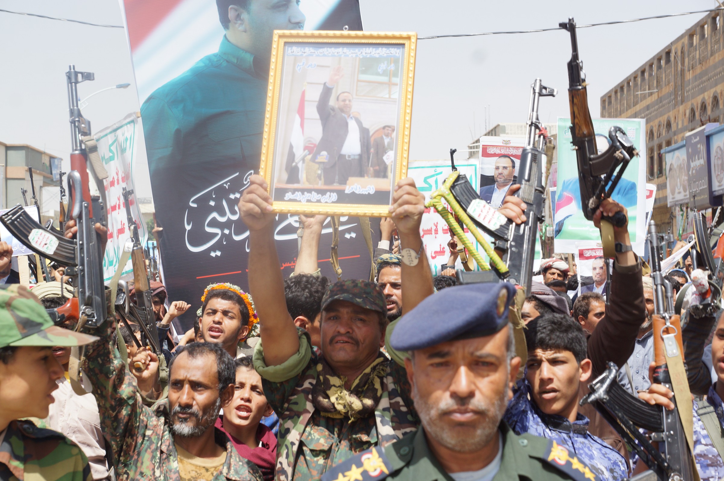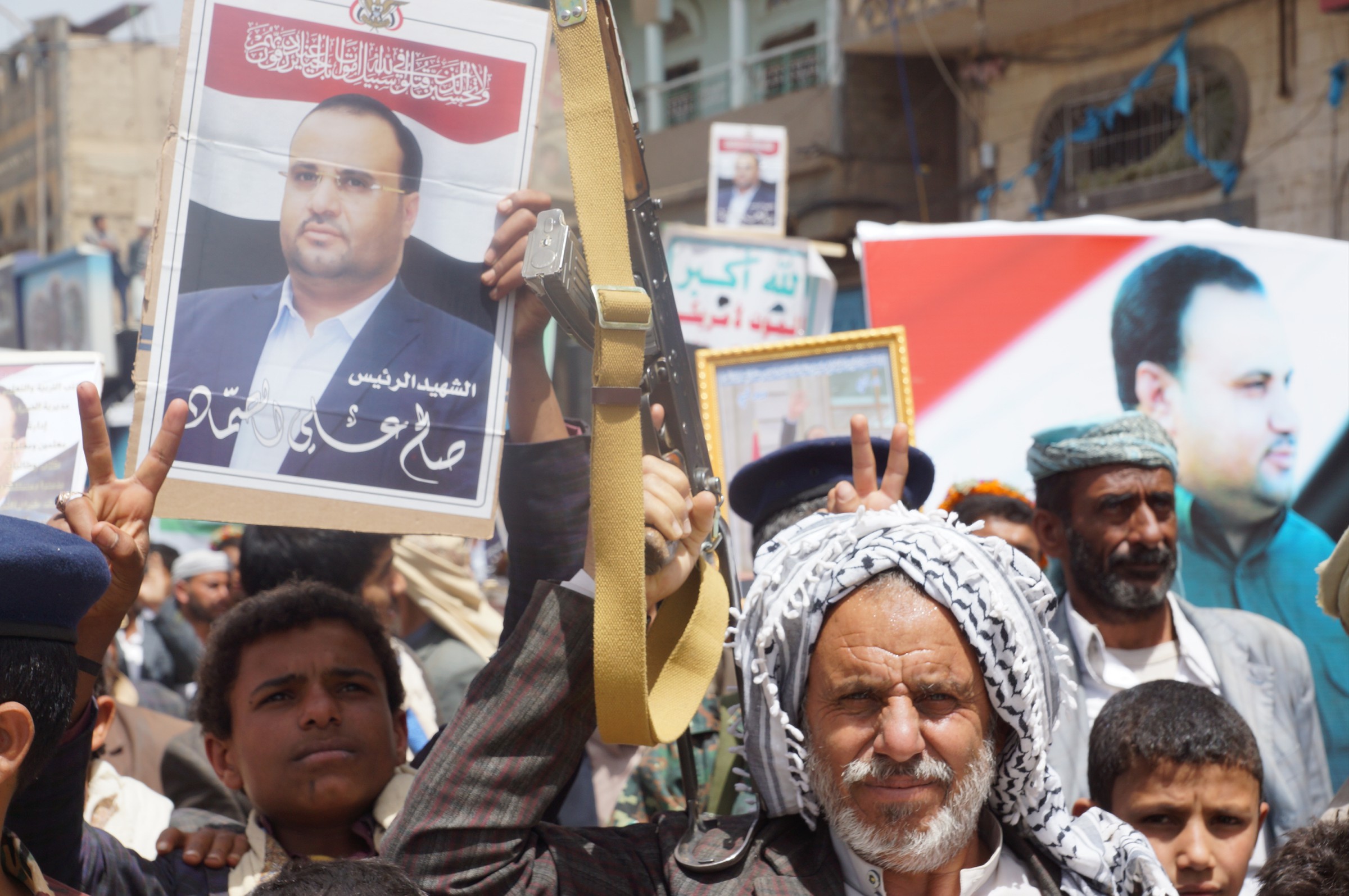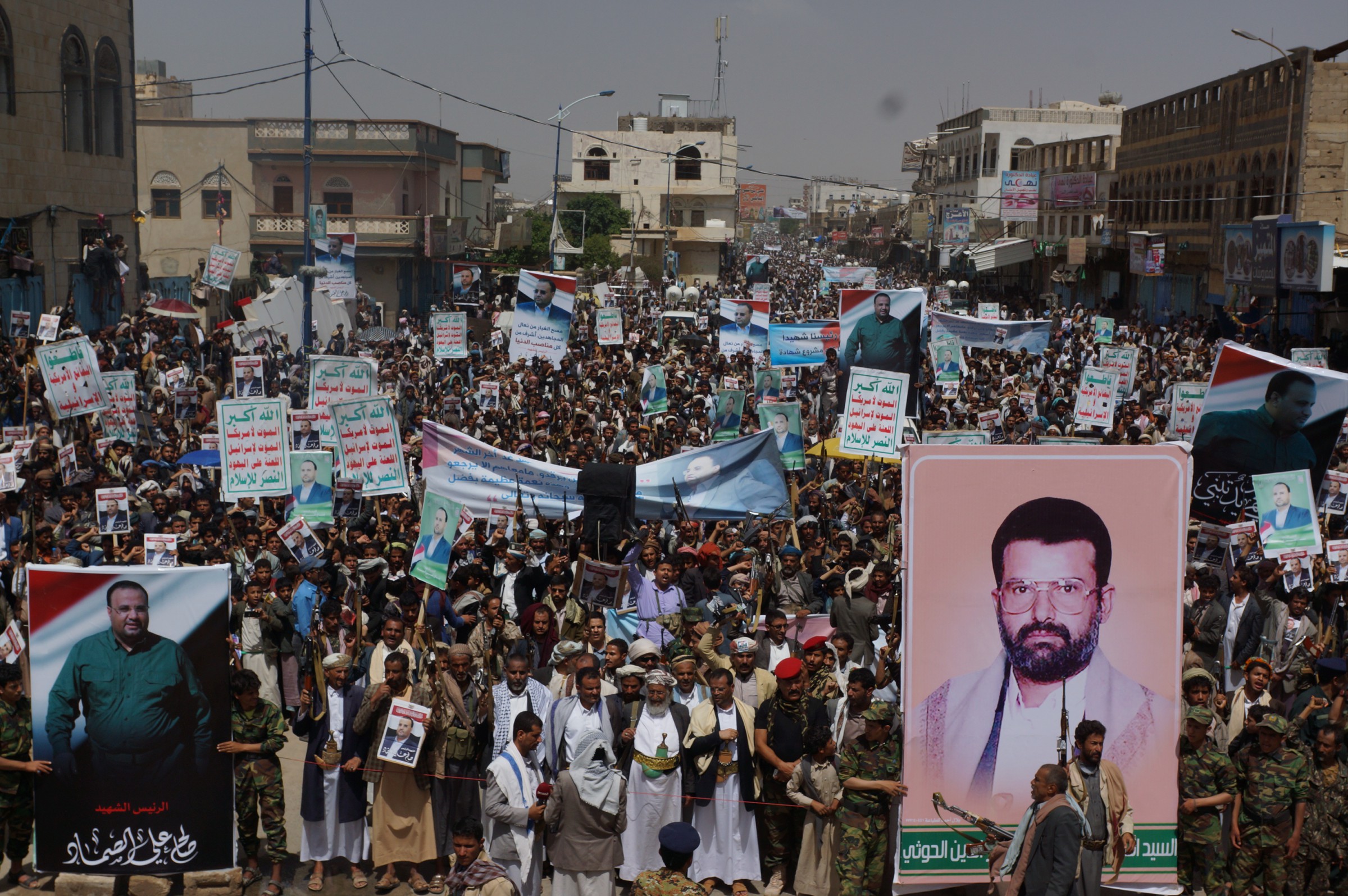 وإننا في هذه المسيرة الحاشدة مسيرة ” الوفاء لرئيس الشهداء” نرفع أسمى أيات العزاء والمواساة للسيد القائد عبد الملك بدر الدين الحوثي وللمجلس السياسي الأعلى ولأسرة الشهيد وللأمة الإسلامية جمعاء بهذا المصاب الجلل والخسارة الفادحة التي كانت المرحلة بحاجة إلى هذه القامة السامقة والرجل المؤمن والنزيه .