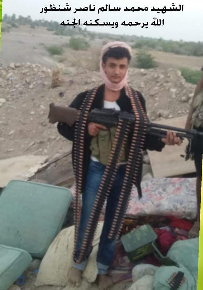 ونشر الناشطين صوراً لطفل يدعى محمد سالم سنظور قتل في الساحل الغربي في منطقة الفازة ، التي تكبدت القوات التابعة للواء خامس عمالقة لخسائر كبيرة اسفرت عن قتل وجرح واسر مايزيد عن 150 من هذه القوات .