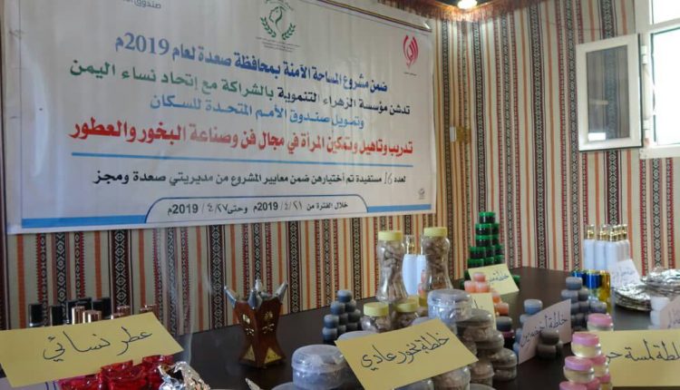 اختتمت مؤسسة الزهراء التنموية اليوم 29 أبريل 2019 م دورة صناعة البخور والعطور المقامة بمركز المساحة الآمنة بمحافظة صعدة بالشراكة مع اتحاد نساء اليمن وبدعم وتمويل نت صندوق الأمم المتحدة .
