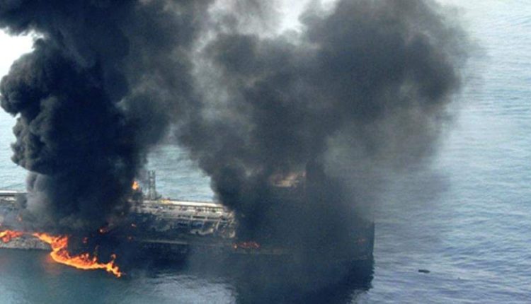 موضحة أن ناقلات النفط التي اشتعلت فيها النيران هي “الأميجال” رقم 91477674 و “خمسا 10” رقم 94320704