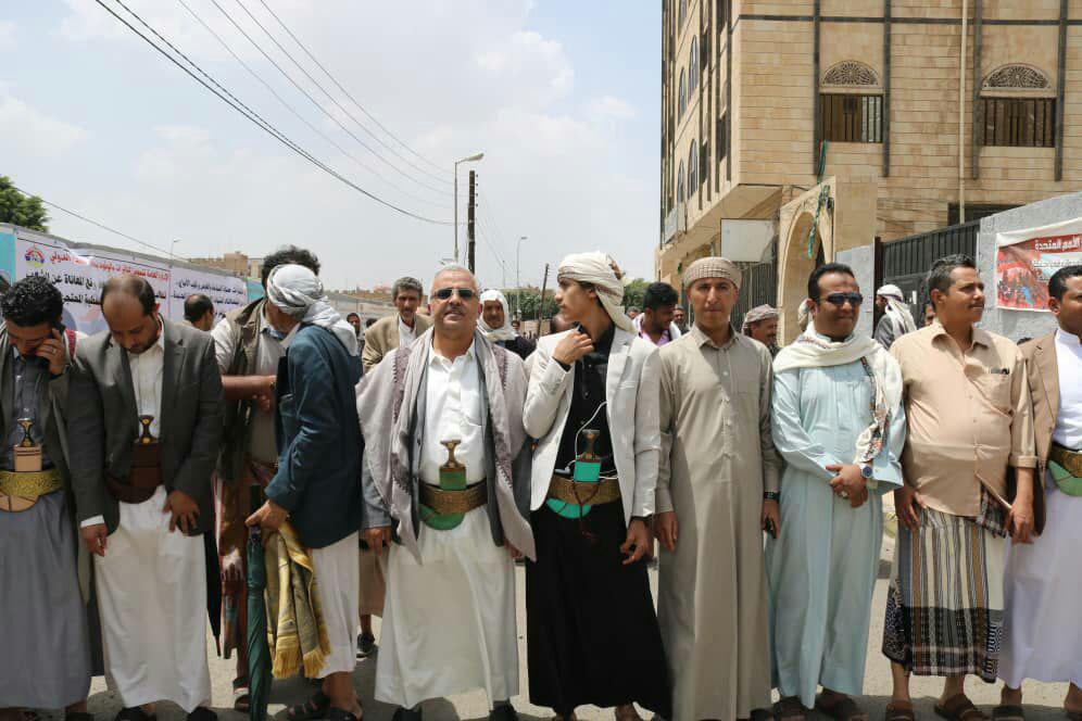 وعقب صلاة الجمعة نظم موظفي شركة النفط اليمنية وقفة احتجاجية امام مكتب الامم المتحدة في شارع الستين بالعاصمة صنعاء .