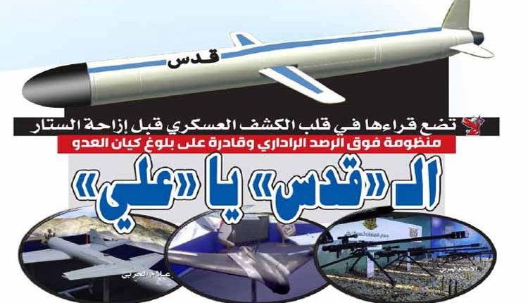 وكانت القوة الجوصاروخية اليمنية أطلقت صاروخاً مجنحاً من نوع كروز على “مطار أبها” وآخر محطة التحلية والطاقة في “الشقيق” غرب جيزان في المملكة السعودية، ولم تكشف مزيد تفاصيل عن مواصفات الصاروخ الذي تؤكد معلومات الصحيفة أنه من نوع كروز الذكي والمصنوع من مواد عصية على الرصد من قبل أحدث الرادارات، وقد أطلقت عليه وحدة الجوصاروخية اسم “قدس 1”.