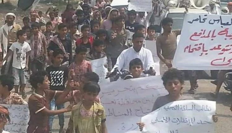 ورفع المتظاهرون لافتات معبرة عن سخطهم واستيائهم من النقاط العشوائية التابعة “لأبي العباس” التي تقوم بتعسف أبناء منطقة الكلائبة في البيرين، بمديرية المعافر.
